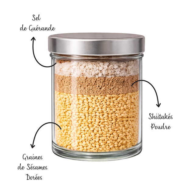 Le gomasio aux shiitakes est un condiment délicat et savoureux, alliant les arômes de la cuisine japonaise traditionnelle et la richesse umami des champignons shiitake. Ce mélange harmonieux de graines de sésame grillées et de sel de mer, sublimé par la profondeur boisée et terreuse des shiitakes, apporte une touche raffinée à vos plats. Son goût unique, à la fois doux et légèrement salé, enrichit les salades, les légumes, les soupes et les riz, transformant chaque bouchée en une expérience gustative exceptionnelle.