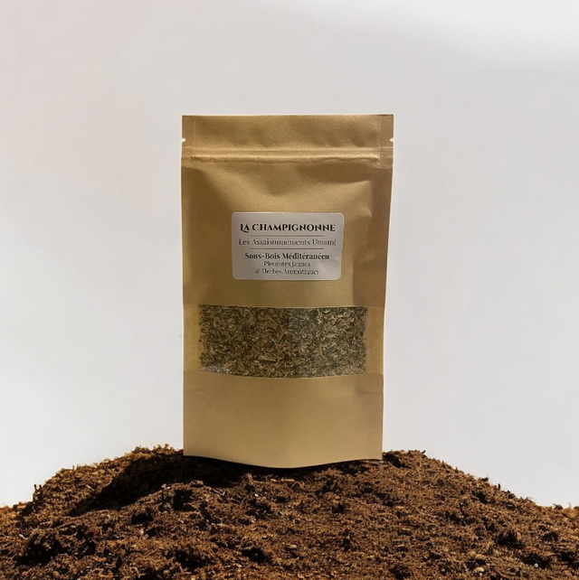 Un assaisonnement sec à base de pleurotes jaunes et d’herbes de Provence. Il apporte une touche umami et aromatique aux pâtes, légumes rôtis, sauces tomates et plats mijotés.
